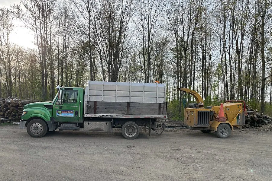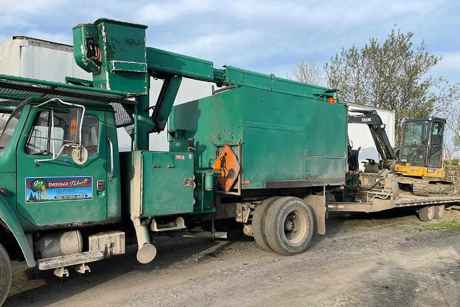 Que ce soit après un émondage, un élagage ou un abattage, les branches accumulées peuvent rapidement encombrer votre terrain. Émondage Thibeault offre un service de déchiquetage rapide et efficace, idéal pour vous débarrasser des résidus de bois tout en laissant votre propriété propre et dégagée.